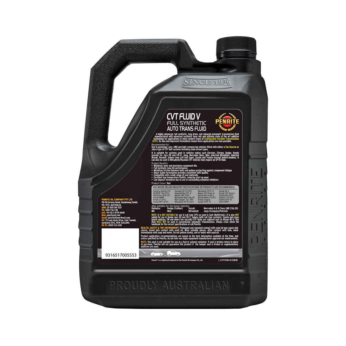 CVT Fluid V подходит для использования в легковых автомобилях и легких коммерческих автомобилях.