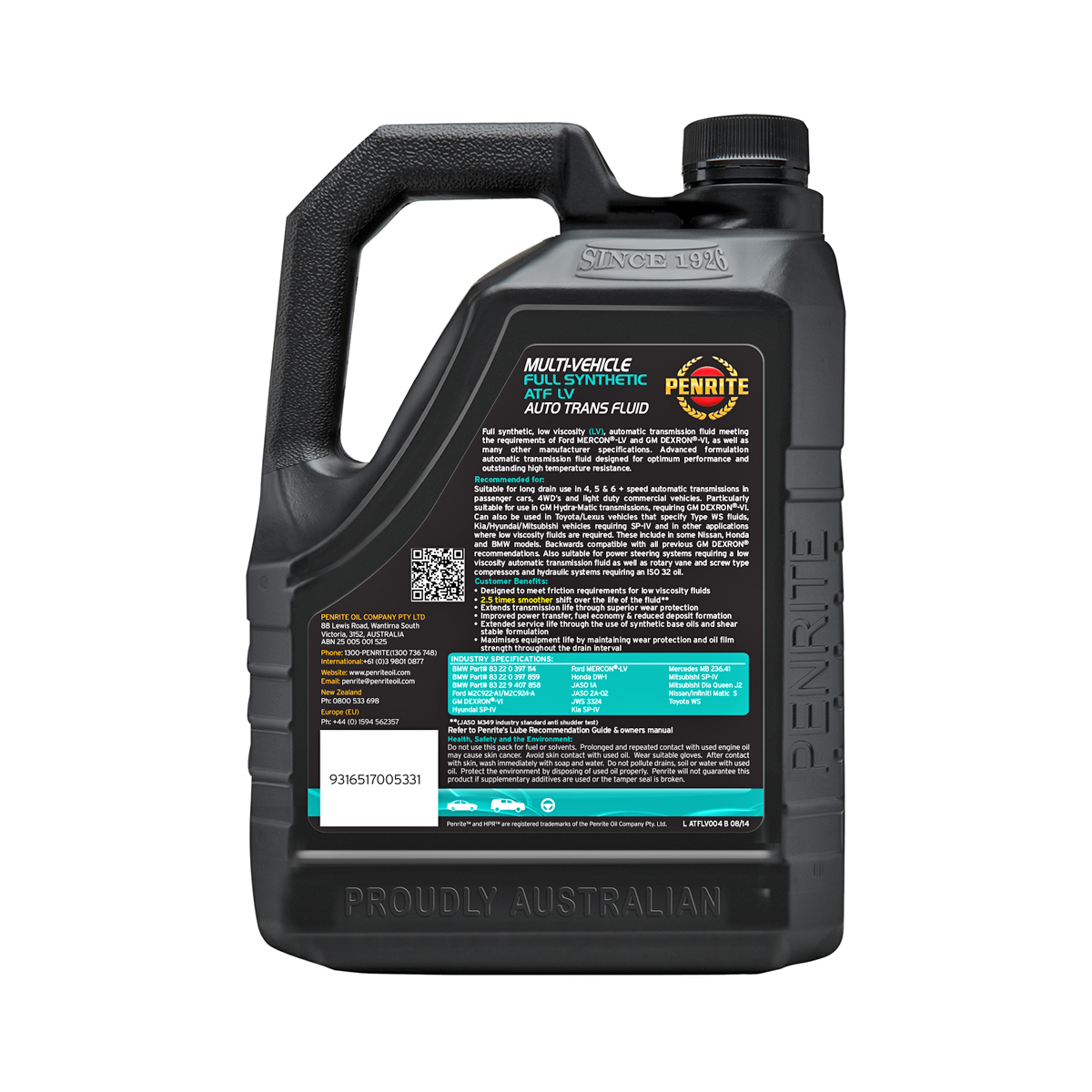 ATF LV особенно подходит для использования в трансмиссиях GM Hydra-Matic, требующих GM DEXRON®-Vl с 2006 модельного года, таких как Holden серии VE/VF, а также в трансмиссиях последних моделей Ford, требующих Ford MERCON®-LV, используемых в Ford Kuga бензин 1.6 4WD, дизели Territory SZ и модели Ford Ranger PX. Его также можно использовать в автомобилях Toyota/Lexus, в которых указаны жидкости типа WS , в автомобилях Kia/Hyundai/Mitsubishi, требующих SP-IV, и в других случаях, когда требуются жидкости с низкой вязкостью. К ним относятся некоторые модели Nissan, Honda и BMW.