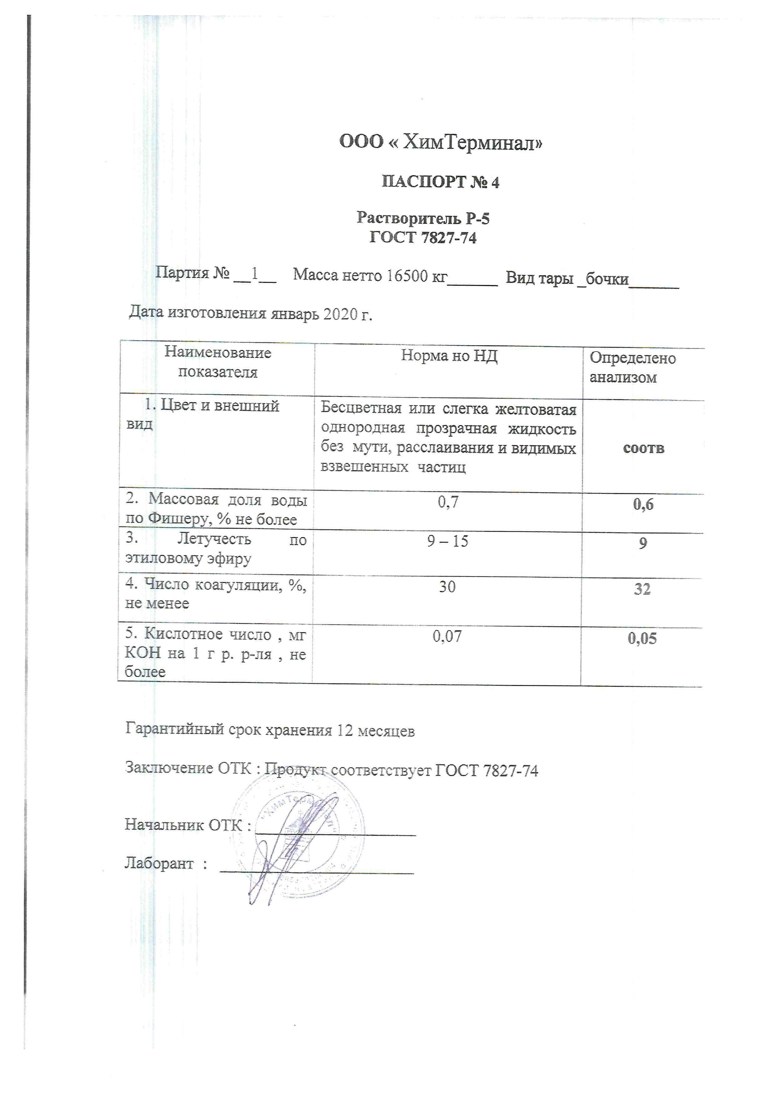 Продукция относится к классу органических многокомпонентных растворителей, при производстве которого, используются недорогие летучие вещества. В основе растворителя Р-5, содержится толуол, концентрация которого достигает 40%. А также, бутилацетат и ацетон, дополняющие это ароматическое вещество, содержатся в равных долях по 30%.